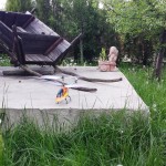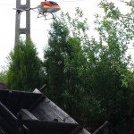 Grătar. Foc. Mici. Şi câteva pălării de ciuperci. Mai la ceas de înserare. Exact şi taman bun pentru ultima jucărie, un elicopter de 1 m şi ceva lungime şi vreun kil jumate greutate. Prima pornire a fost cu rostogolire. A doua, cu atârnare. Palele elicopterului făcându-şi loc, secerând extrem de uşor ramurile, într-un măr. De aici, am părăsit zona. M-am retras pe-o terasă într-un şezlong, unde am adormit la aer, ca un copil în landou. O oră mai târziu, aveam să constat că orice urmă de populaţie masculină era dispărută din bătătură.